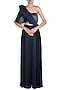 Featuring a navy blue pant saree in wrinkled satin lycra base with a semi-skirt at the back. It is paired with a navy blue satin crepe draped blouse having cutdana loop, tassel embroidery and pleats. Accentuate it with statement jewellery and heels for a cocktail look.