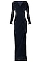 Featuring a navy blue wrinkled gown in satin lycra and net base with pleats and full sleeves.