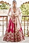 Featuring a cherry pink lehenga in raw silk and net base with zardosi and thread embroidery. It is paired with a matching blouse and a scalloped dupatta.