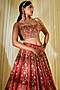 Featuring a rusty red lehenga in silk base with zardosi and resham hand embroidery. It is paired with a matching embroidered blouse and an organza dupatta.