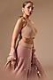 Featuring a wine lehenga in satin organza base with chitta and sequins embroidery. It is paired with a velvet zardosi embroidered blouse and a satin organza embroidered dupatta. Accentuate it with kundan polki earrings and metallic heels for a wedding, cocktail or sangeet ceremony.