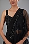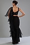 Black Crepe & Organza Draped Ruffled Saree Set