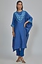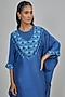 Featuring a blue kaftan in dupion base. It is paired with satin silk pants. Accentuate it with statement earrings and heels for a festive look.