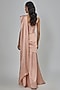 Featuring a blush pink concept saree in crepe base. It is paired with a crepe drape and a raw silk blouse. Accentuate with diamond jewellery, metallic heels and a sleek clutch for a sophisticated look, perfect for receptions or cocktail events.