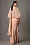 Featuring a blush pink saree in crepe base with a detachable pallu. It is paired with a raw silk embroidered blouse and a satin organza jacket. Accentuate it with statement jewellery and heels for weddings or sangeet ceremonies.