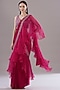 Featuring a cherry red ruffled drape saree in crepe, organza, and raw silk base. It is paired with a matching blouse. Accentuate with statement jewellery and heels for a wedding, sangeet or engagement ceremony.