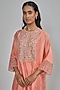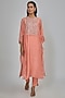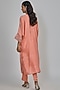 Featuring a coral kaftan in dupion base. It is paired with satin silk pants. Accentuate it with statement earrings and heels for a festive look.