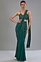 Emerald Green Crepe Embellished Fish Cut Draped Saree Set
