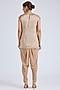 Featuring a golden short kurta in tissue base with embroidery. It is paired with a net bib and crepe pants. Accentuate it with zircon dangler earrings, a clutch bag or high heels for festive occasions or sangeet ceremonies.