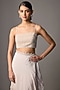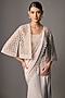 Featuring a grey saree in crepe base with a detachable pallu. It is paired with a raw silk embroidered blouse and a satin organza jacket. Accentuate it with statement jewellery and heels for weddings or sangeet ceremonies.