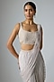 Featuring a grey draped saree in soft net base with embellishment. It is paired with a raw silk embellished blouse and an embellished detachable pallu. Accentuate it with dangler earrings and heels for a cocktail soirees, wedding or sangeet ceremony.