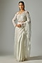 Ivory Satin Silk & Organza Embroidered Saree Set