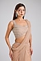 Featuring a pink saree in net base. It is paired with a blouse and an inner skirt. Accentuate it with block heels and statement earrings for festive occasions or wedding ceremonies.