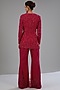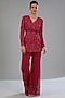 Featuring a red jacket in crepe base with embellishments and stretch net sleeves. It is paired with net embellished pants and a belt. Style this designer set with dangler earrings and heels for an engagement or cocktail ceremony.