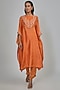 Featuring a rust kaftan in dupion base. It is paired with satin silk pants. Accentuate it with statement earrings and heels for a festive look.