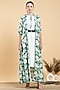 Featuring a pastel green cape in muslin base with floral leaf print. It is paired with a contrasting crushed cotton dress.
