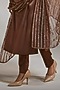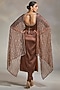 Featuring a congnac kurta in heavy satin base with hand embroidery. It is paired with matching trousers and an organza dupatta.