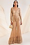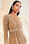 Featuring a beige peplum kurta in organza base with hand embellishment. It is paired with matching hand embellished sharara pants, a silk bustier and a dupatta.