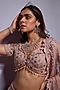 Featuring a blush pink lehenga in organza and tulle mesh base with embellishments. It is paired with a blouse having tassels details and a scalloped dupatta. Accentuate it with statement jewellery and heels for a bridal look.