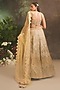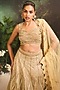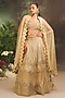 Featuring a gold ombre lehenga in organza base with embellishments. It is paired with a satin embellished blouse and a tulle scalloped embellished dupatta. Accentuate the designer lehenga with statement jewellery and heels for a wedding, sangeet or engagement ceremony.