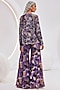 Featuring a purple and beige jacket in organza base with print. It is paired with a matching satin bustier and printed chiffon pants.