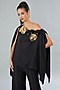 Featuring a black top in silk base with hand embroidery. It is paired with shimmer stripe pants. Perfect for evening wear.