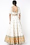 Featuring an ivory lehenga in raw silk base with applique and sequins embroidery. It is paired with a matching blouse and a cotton silk dupatta.