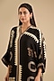 Featuring a black kaftan in dupion silk base with geometric block print and french knot embroidery. Accentuate it with statement earrings and block heels for festive occasions.