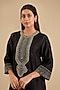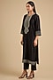 Featuring a black kurta in mulberry silk base with side slit, flared sleeves and french knot embroidery. It is paired with straight pants. Accentuate it with block heels and statement earrings for festive ceremonies.