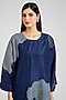 Featuring a blue kurta in mulberry silk base with colour-blocked floral print and kantha hand embroidery. It is paired with cotton twill pants. Accentuate it with minimal jewellery, block heels or mules for a complete look, perfect for family gatherings, casual outings or daily office wear.