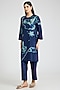 Blue Mulberry Silk Floral Shibori Printed Tunic Set