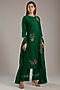 Featuring a forest green kurta in mulberry silk base. It is paired with pants and a dupatta. Accentuate it with stud earrings, embellished flats and a bag for a festive occasion, mehendi or cultural events.