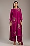 Featuring a fuchsia pink kurta in mulberry silk base. It is paired with pants and a dupatta. Accentuate it with stud earrings, embellished flats and a bag for a festive occasion, pooja or cultural events.