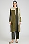 Featuring a green kurta in mulberry silk base with block print, kantha embroidery and color-block detailing. It is paired with silk chanderi pants. Accentuate it with minimal jewellery, block heels or mules for a complete look, perfect for a festive occasion, pooja oor mehendi ceremony.