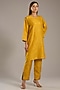 Featuring a haldi yellow kurta in mulberry silk base with screen print. It is paired with pants. Accentuate it with stud earrings, embellished flats and a bag for a festive occasion, haldi or cultural events.