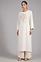 Featuring an ivory kurta in matka silk base with patchwork. It is paired with pants. Style it with statement earrings, heels, and a clutch to elevate your look for festive occasion, haldi or family gatherings.