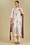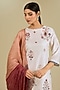 Featuring an ivory kurta in mulberry silk base with hand embroidery. It is paired with pants and a dupatta. Accentuate it with statement earrings and block heels for a festive occasion or pooja ceremony.