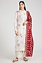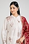 Featuring an ivory kurta in mulberry silk base with kantha motifs embroidery. It is paired with pants and a dupatta. Accentuate it with minimal jewellery, block heels or mules for a complete look, perfect for a festive occasion or pooja ceremony.