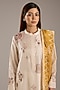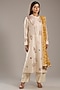 Featuring an ivory kurta in mulberry silk base. It is paired with pants and a dupatta. Accentuate it with stud earrings, embellished flats and a bag for a festive occasion, haldi or cultural events.