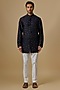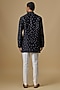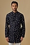 Featuring a black kurta in raw silk base. Style it with pants and kolhapuri sandals for a festive occasion or intimate pooja events, exuding charm and elegance.
