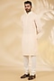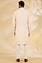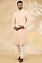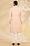Featuring a blush indowestern in silk base. It is paired with a kurta and pants. Style it with mojaris for a wedding, sangeet or engagement ceremony, exuding charm and elegance.