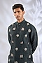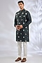 Featuring a bottle green kurta in matka silk base. It is paired with pants. Accentuate it with a pair of kolhapuri sandals for a festive occasion, mehendi or sangeet ceremony.