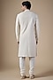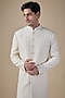 Featuring an ivory sherwani in raw silk base with bead work. It is paired with a kurta and pants. Accentuate it with pair of mojaris, mala and a safa for a traditional look, Perfect attire for your wedding or engagement ceremony.