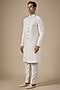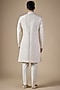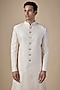 Featuring an ivory sherwani in raw silk base. It is paired with pants. Accentuate it with pair of mojaris, mala and a safa for a traditional look, Perfect attire for your wedding or engagement ceremony.