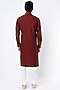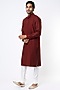 Featuring a maroon kurta in katan silk base with self kantha and dhagai texture. It is paired with contrasting white churidar pants in cotton base.