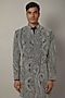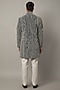 Featuring a midnight blue achkan jacket in raw silk base with beads embroidery. It is paired with a chanderi silk kurta and stretch cotton trousers. This attire would be an excellent fit for festive occasions or sangeet ceremonies.