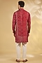 Featuring a sindoori red kurta in matka silk base. It is paired with pants. Perfect for a festive occasion, sangeet or engagement ceremony, exuding charm and elegance.