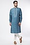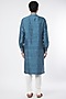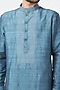 Featuring a teal blue kurta in cotton base with dot-stitch embroidery. It is paired with white churidar pants. Accentuate it with kolhapuris or embroidered juttis for an elegant yet easy-going look, perfect for pooja ceremonies or festive gatherings.