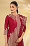 Featuring a poppy red kurta in mulberry silk base with hand embroidery. It is paired with pants and a dupatta. Accentuate it with statement earrings and block heels for a festive occasion or pooja ceremony.