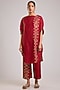 Featuring a red kurta in mulberry silk base with block print. It is paired with pants. Accentuate it with minimal jewellery, block heels or mules for a complete look, perfect for a festive occasion or pooja ceremony.